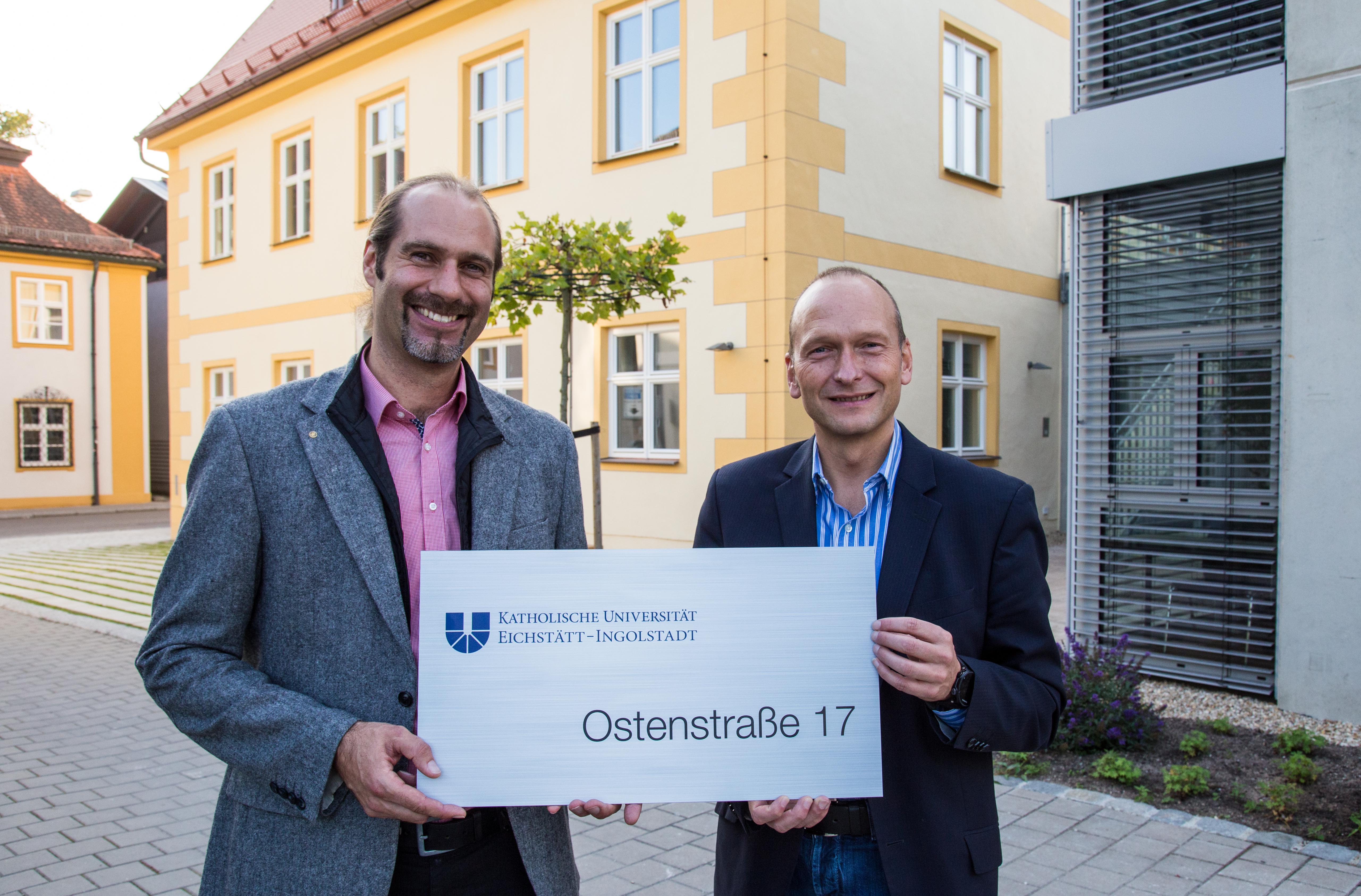 Übergabe des sanierten Gebäudes an die Katholische Universität Eichstätt-Ingolstadt. Investor und Hausbesitzer Josef Frey jun. mit KU-Kanzler Thomas Kleinert
