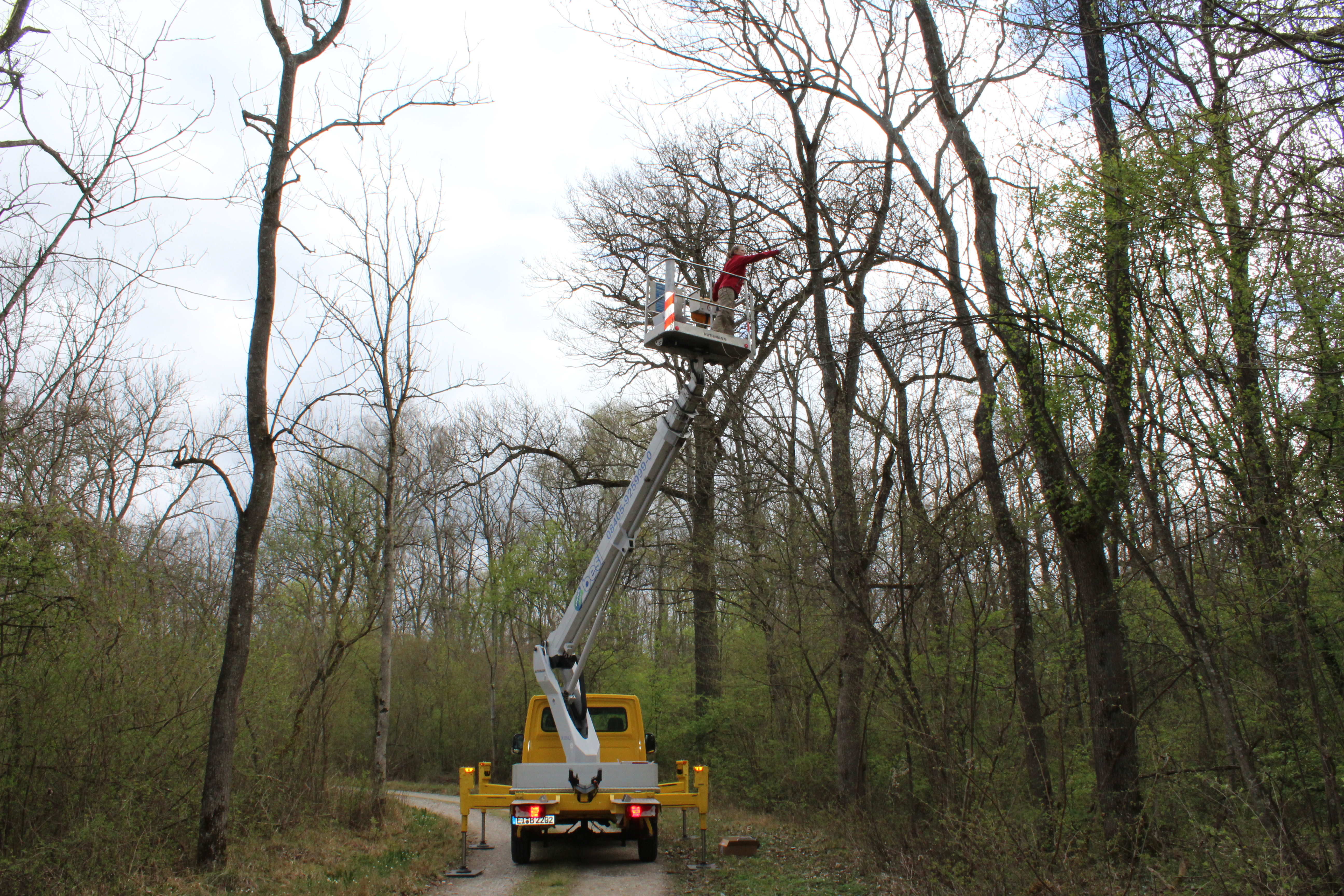 In schwindelerregenden Höhen von 20 Metern entnimmt Sara Hocheder, Geographiestudentin an der Katholischen Universität Eichstätt-Ingolstadt, Pollenproben der Esche im Auwald bei Neuburg. (Fotos: Jochner/Jetschni/upd