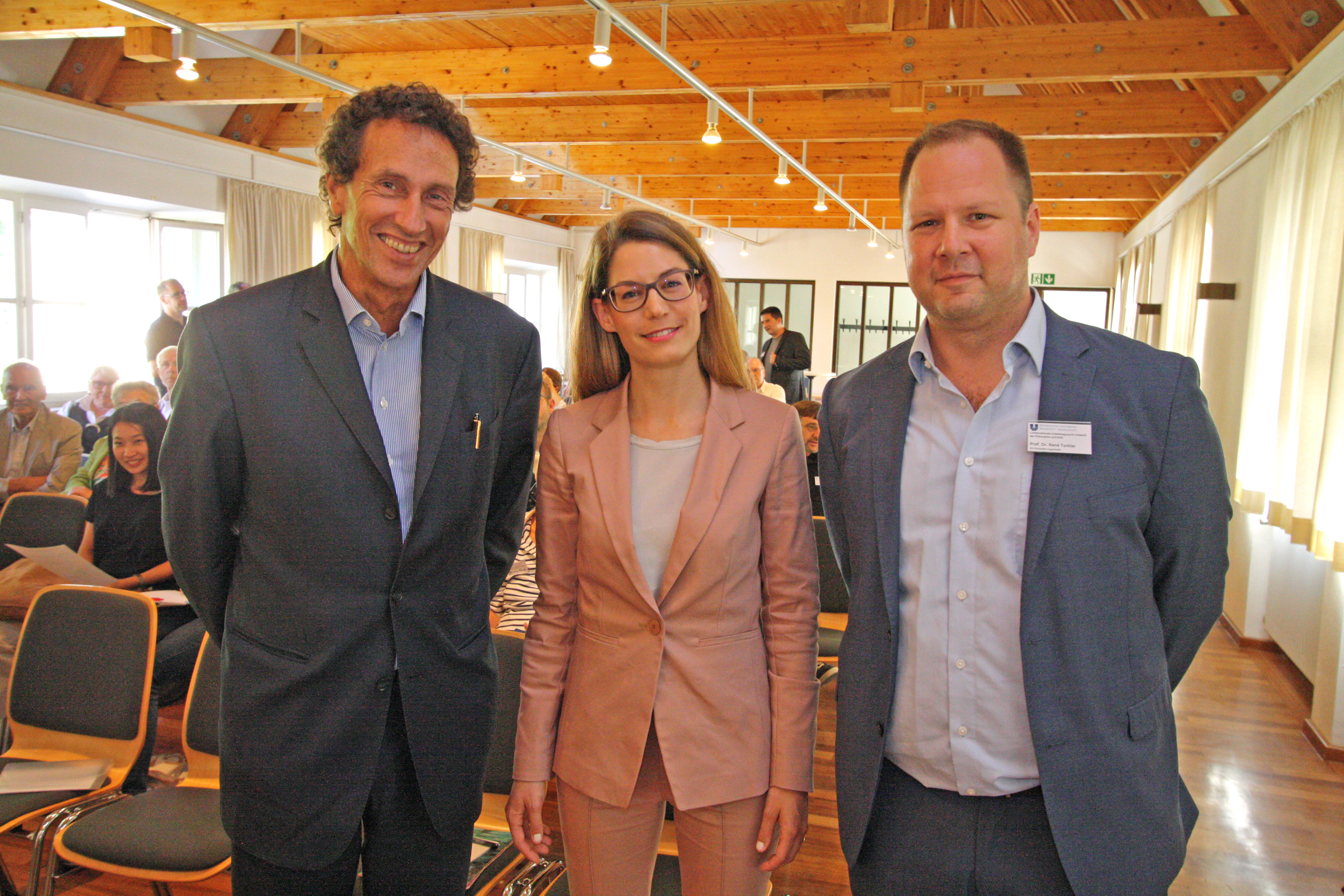 Unter dem Eindruck der aktuellen Neuregelung der Lehramtsprüfungsordnung für das Fach Ethik/Philosophie in Bayern stand eine Tagung an der KU, bei der auf Einladung von Prof. Dr. René Torkler (Stiftungs-Juniorprofessur für die Didaktik der Ethik) Experten aus Deutschland, Österreich und der Schweiz über die Frage diskutierten, was gute Lehrerbildung in den Fächern Ethik und Philosophie im Rahmen des universitären Lehramtsstudiums genau bedeutet? Prominenter Gastredner der Veranstaltung war der ehemalige Kulturstaatsminister Prof. Dr. Julian Nida-Rümelin, der ebenso wie Professor Torkler aktuell an der Neuausrichtung von Ethik als Schulfach in Bayern beteiligt ist. (v.l.) Gastreferent Prof. Dr. Julian Nida-Rümelin gemeinsam mit der Geschäftsführerin des Zentrums für Lehrerbildung und Bildungsforschung, Birgit Langer, und Gastgeber Prof. Dr. René Torkler.