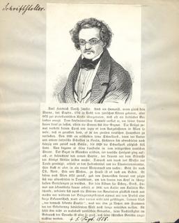 Holzstich; ca. 6,5 x 6,3 cm. - Unten von einem längeren biographischen Text überklebt, beide zusammen auf Papier aufgeklebt. - MIT DIGITALAUFNAHME