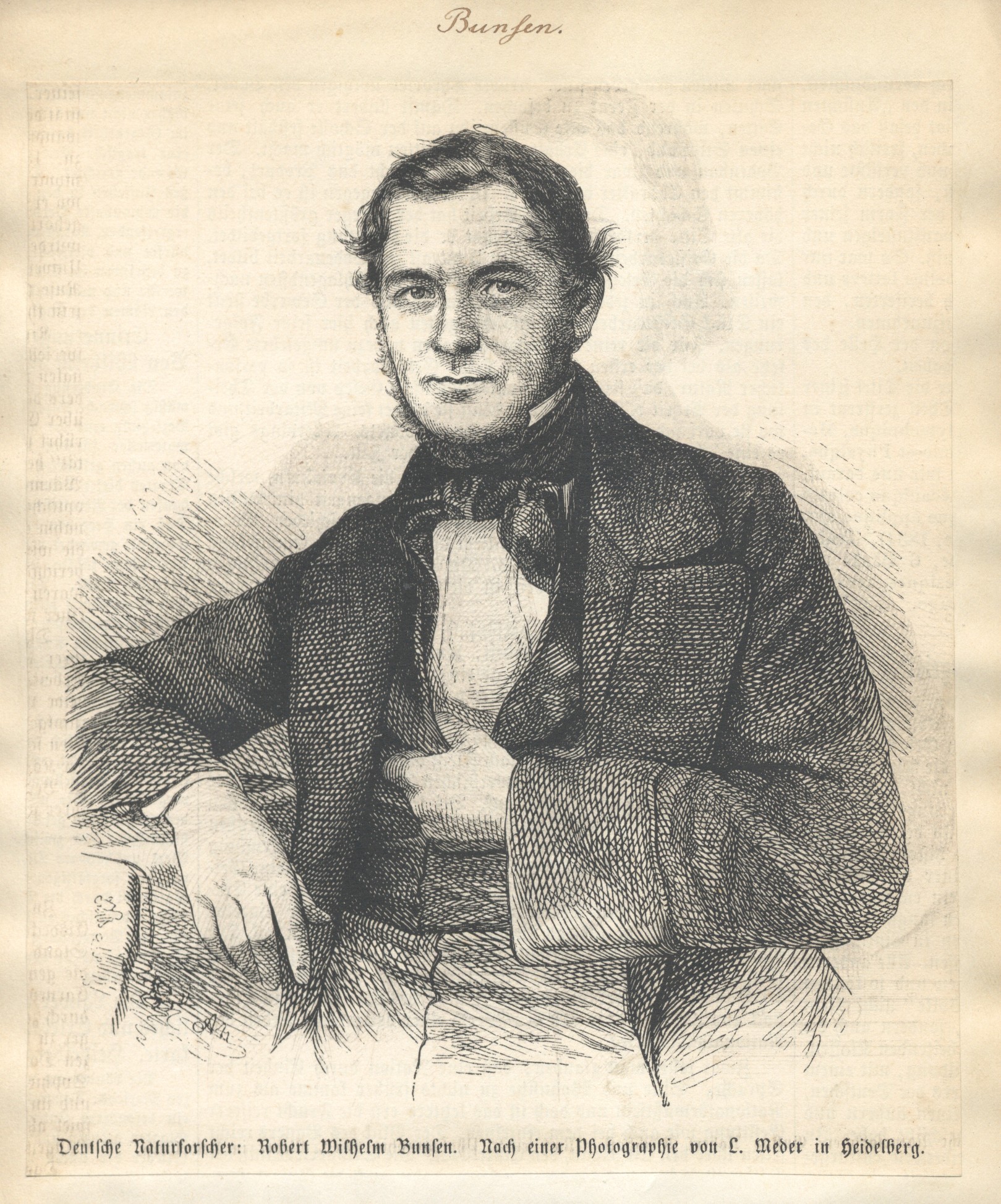 Holzstich; ca. 13,5 x 11,7 cm. - Etwas fleckig, mit Abfärbung des auf der gegenüberliegenden Seite abgedruckten Porträts von Gustav Robert Kirchhoff. - Auf Papier mit sehr kurzen handschriftlichen biographischen Angaben (auf der Rückseite) aufgeklebt. - MIT DIGITALAUFNAHME