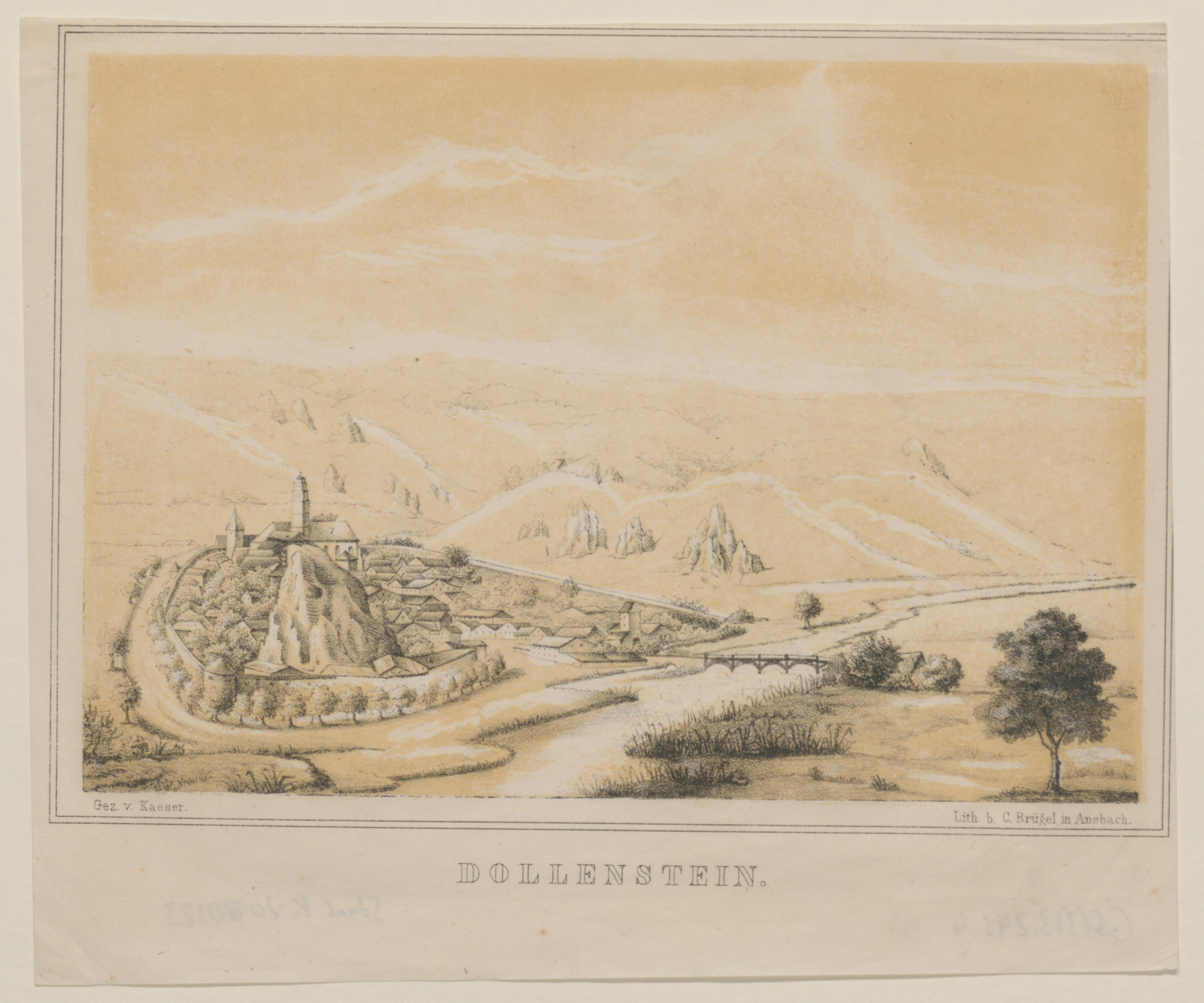 Kreidelithographie auf Tonplatte; 14,1 x 20,2 cm (Tonplatte) bzw. 15,3 x 21,4 cm (Umfassungslinie). - Ungleich beschnitten, rechts mit teilweisem Verlust der Umfassungslinie. - Leicht faltig. - MIT DIGITALAUFNAHME