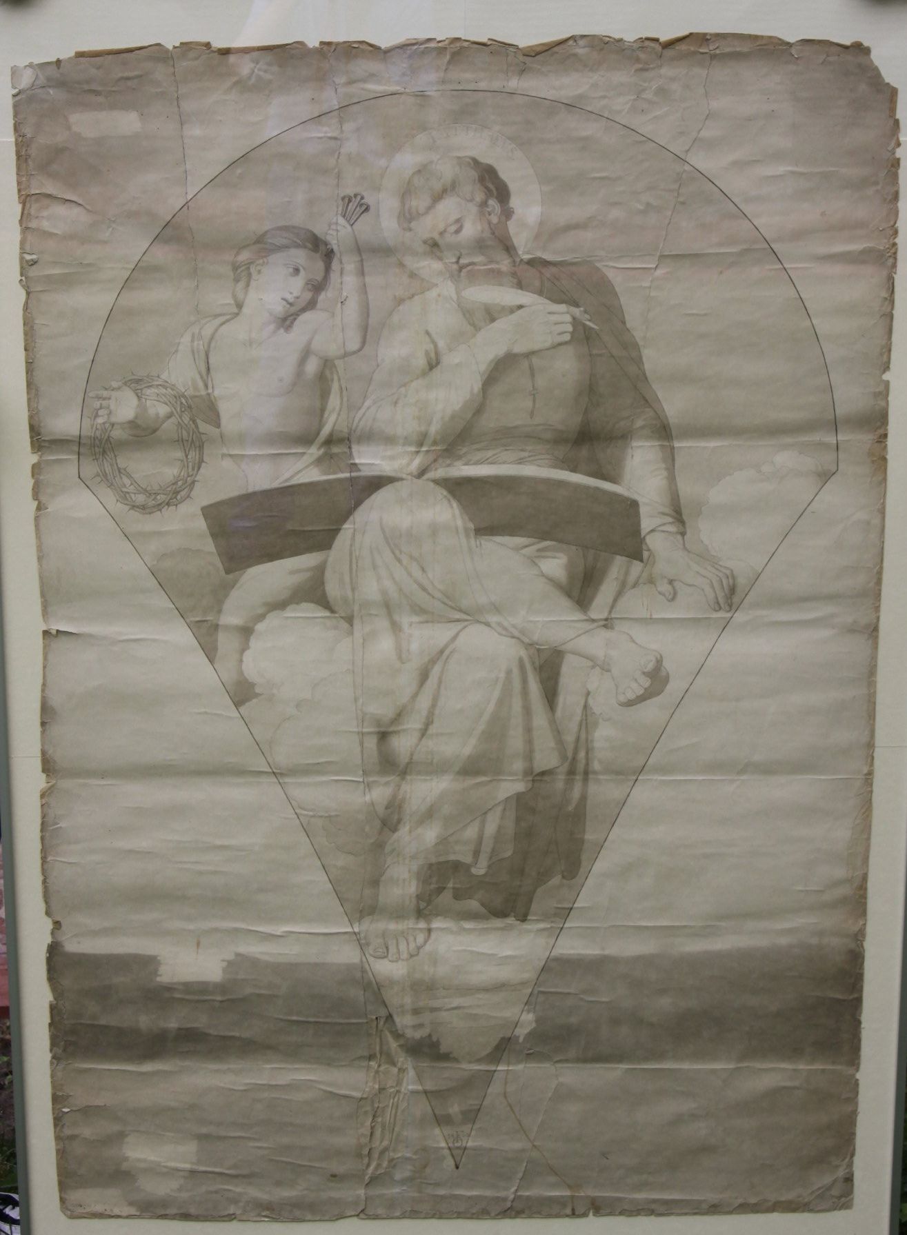 Bleistift, Kohle, Kreide, Tusche, braun laviert; ca. 160 x 110 cm. - Teilweise gebräunt und fleckig, faltig, an den Rändern beschädigt. - MIT DIGITALAUFNAHME