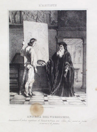 Andrea del Verocchio, reconnaissant le talent supérieur de Léonard de Vinci son Elève, lui remet sa palette et renonce á la peinture