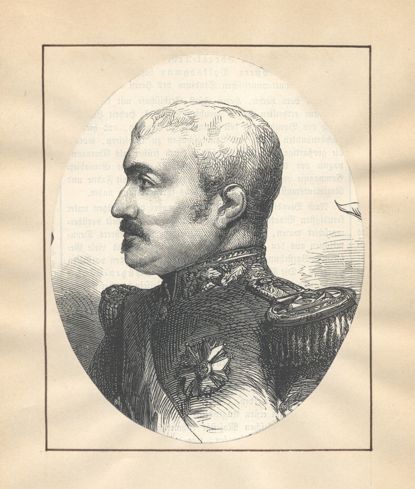 [Brustbild nach links im Oval, Kopf im Profil]