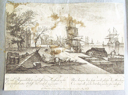 Radierung; 13 x 21,9 cm. - Stark stockfleckig, auf blaues Papier aufgeklebt. - MIT DIGITALAUFNAHME
