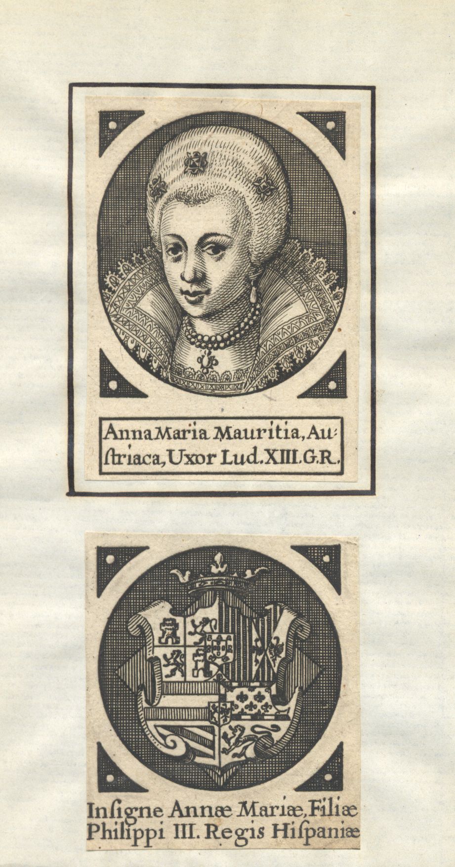 Anna Maria Mauritia, Austriaca, Uxor Lud. XIII. G.R. [und] Insigne Annae Mariae, Filiae Philippi III. Regis Hispaniae