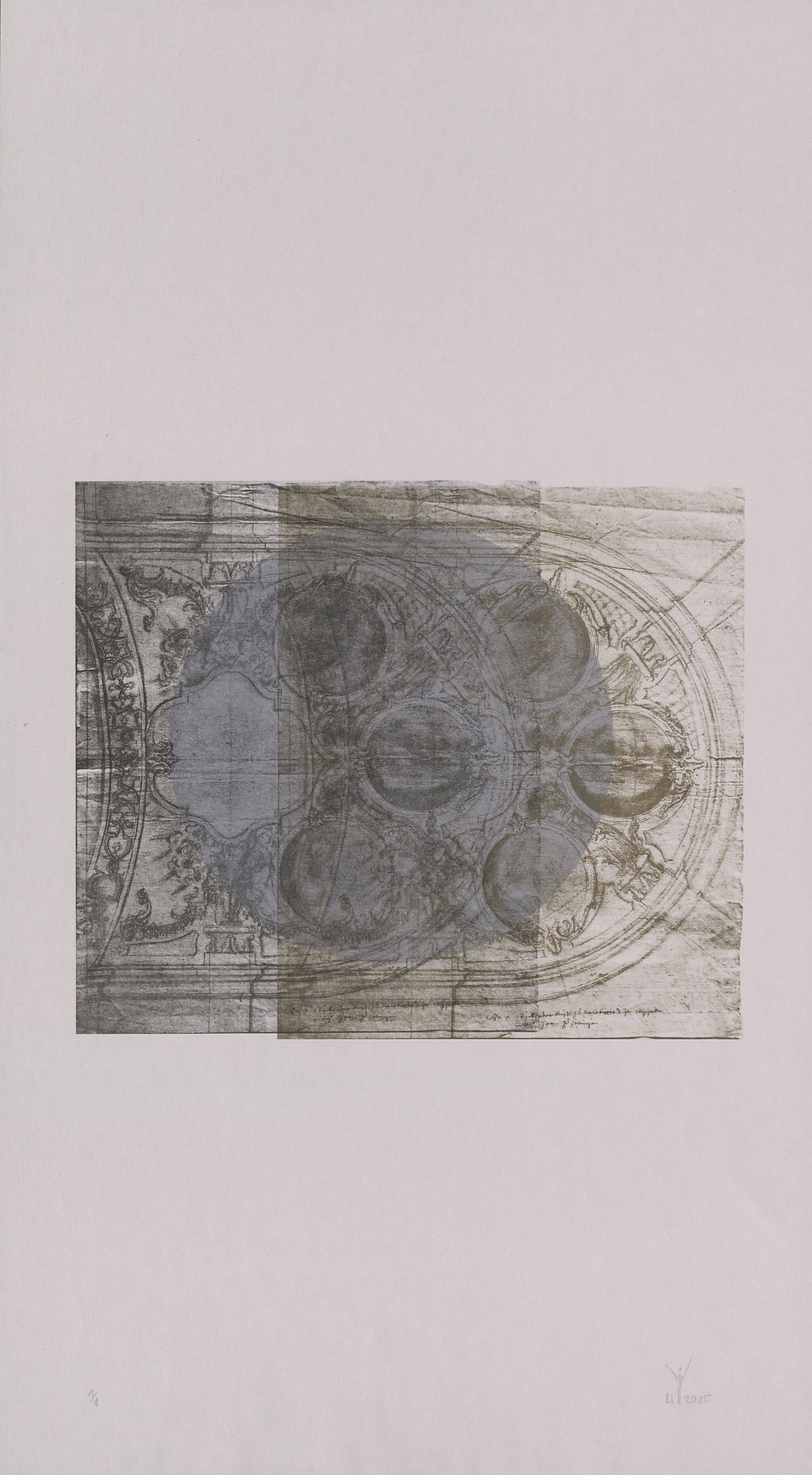 [3 Drucke übereinander: ein Entwurf (für Zöbingen?) Gabriel de Gabrielis und seines Bruders Franz in 2 Farben und ein silberner Kreis]