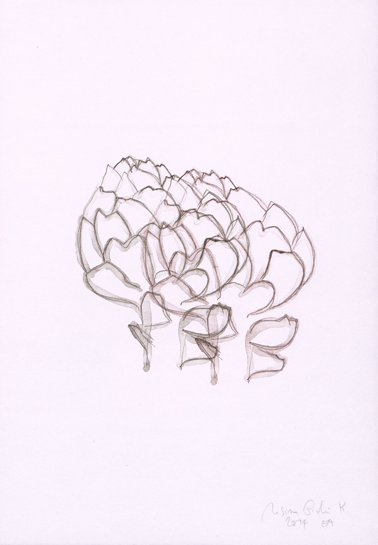 Lithographie (Tusche, Kreide; 2 Farben); ca. 16 x 16,7 cm (Bild) bzw. 38,9 x 27,1 cm (Blatt). - Von der Künstlerin mit Bleistift datiert und signiert. - MIT DIGITALAUFNAHME