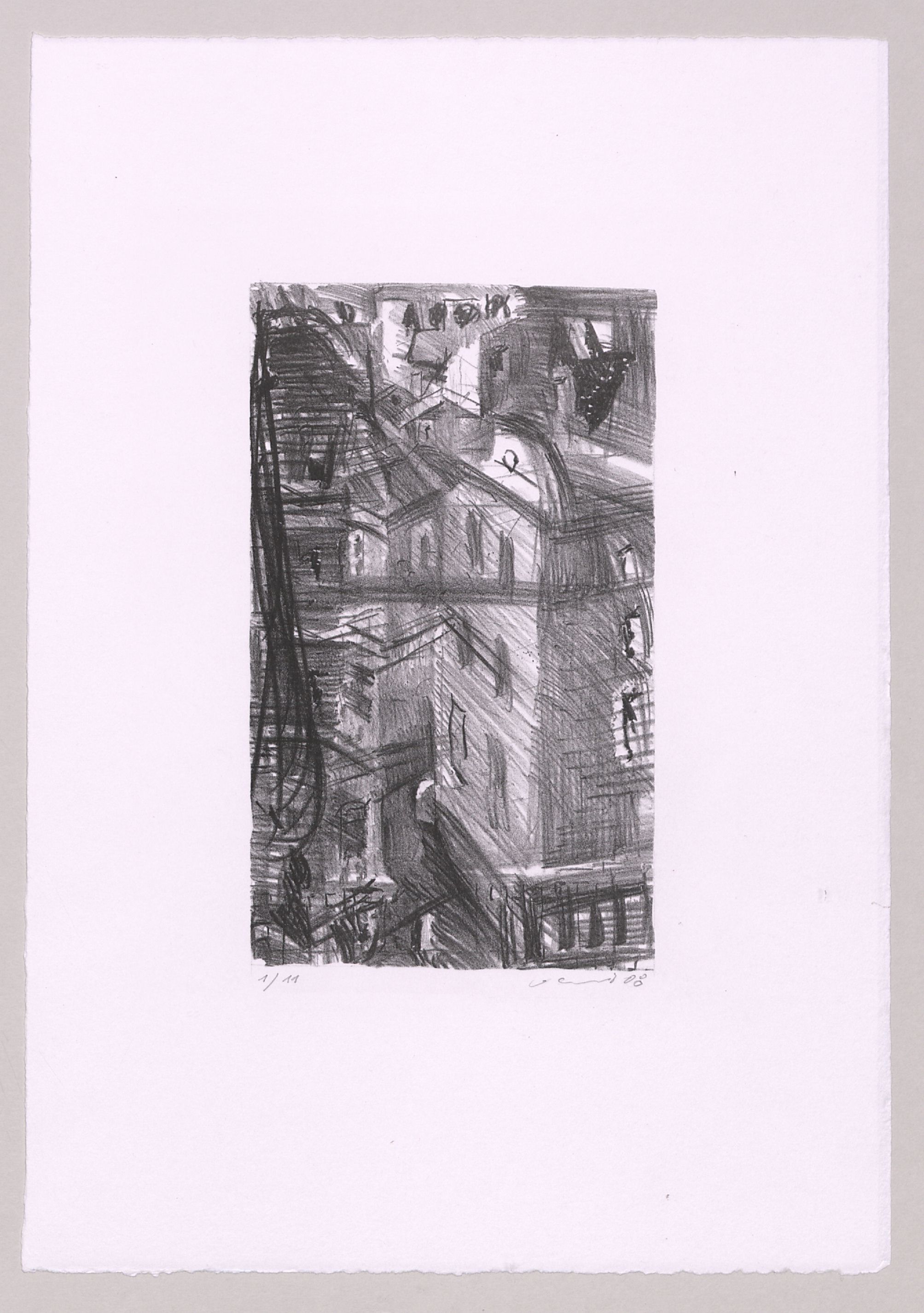 Kreidelithographie; ca. 25,1 x 14,8 cm (Bild) bzw. 45,3 x 31,5 cm (Blatt). - Vom Künstler mit Bleistift datiert, numeriert (1/11) und signiert. - MIT DIGITALAUFNAHME