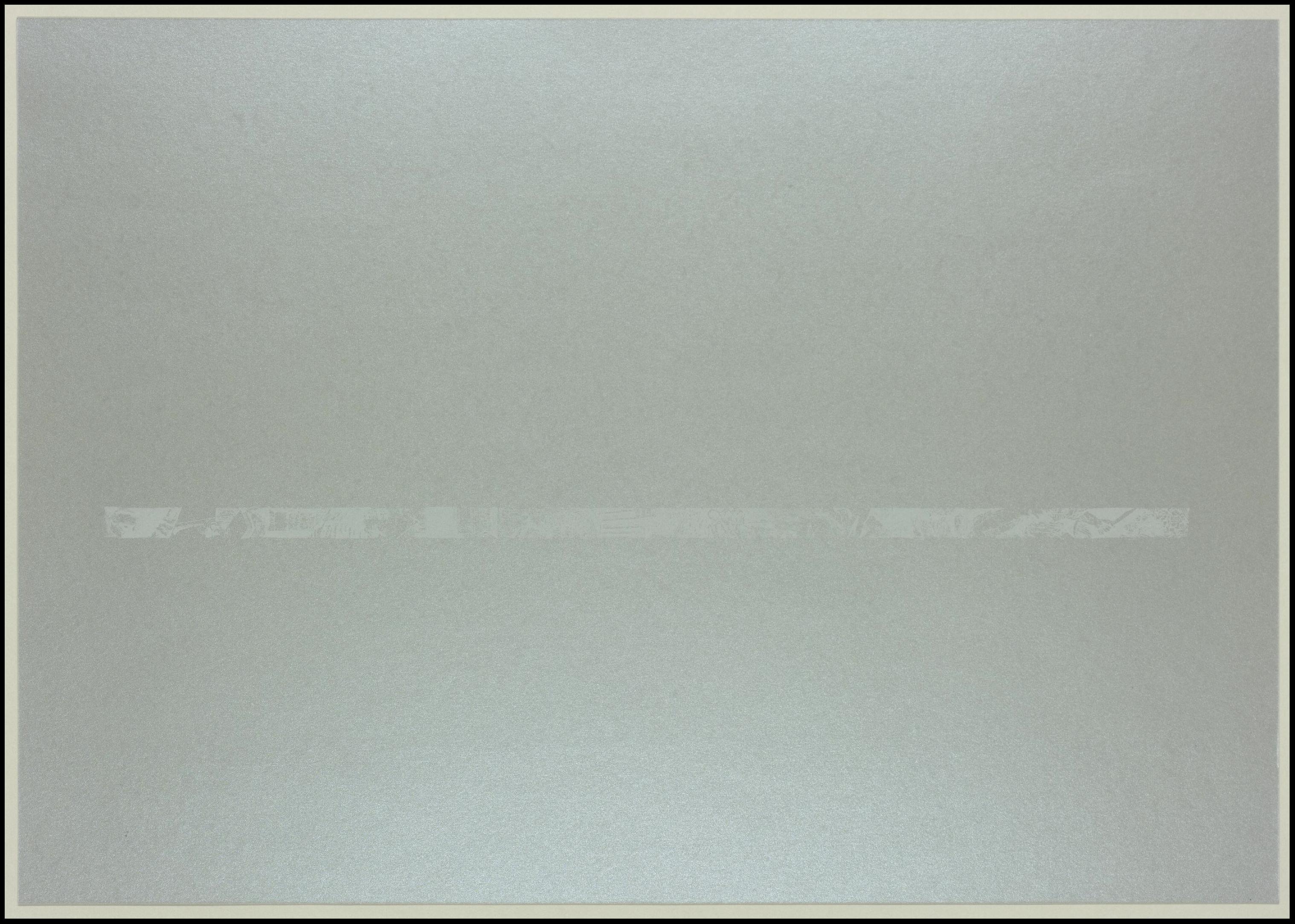 Lithographie in weiß auf silbernem Papier; ca. 1,2 x 43 cm (Bild) bzw. 34,9 x 50 cm (Blatt). - Von der Künstlerin auf der Rückseite bezeichnet, datiert, numeriert (3/6) und signiert. - MIT DIGITALAUFNAHME