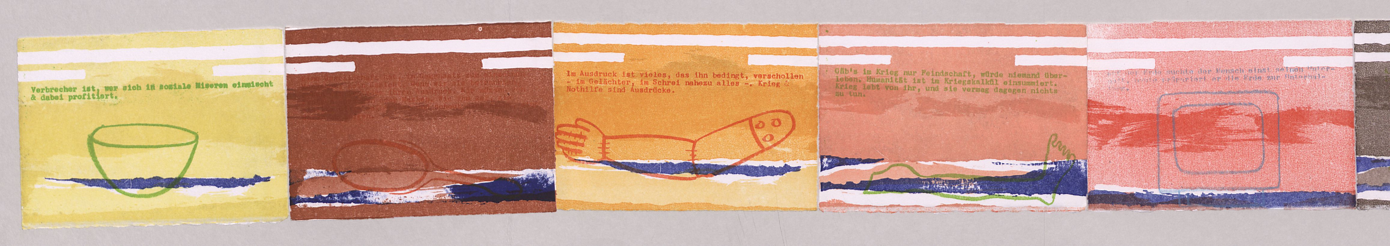 Lithographie, mehrfarbig; ca. 10,5 x 239,5 cm. - Gedruckt auf Büttenpapier. - Von der Künstlerin mit Bleistift numeriert (7/7) und signiert. - MIT DIGITALAUFNAHME
