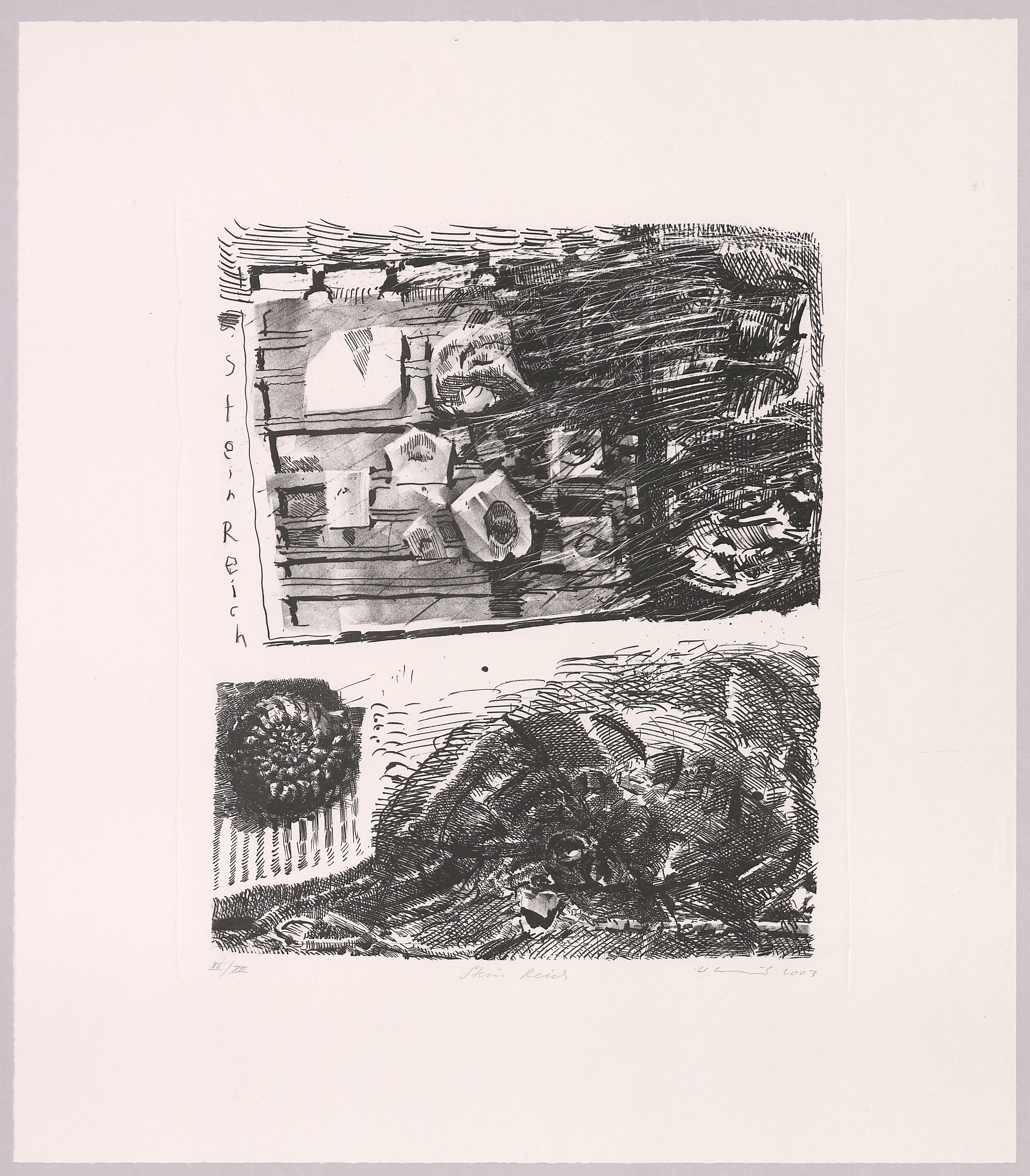 Lithographie (Tusche, Kreide), 2 Motive gedruckt mit einem Stein; ca. 23 x 34 cm und ca. 17 x 34 cm, zusammen ca. 41 x 34 cm. - Mit Bleistift bezeichnet, datiert, numeriert (XII/XVI) und signiert. - MIT DIGITALAUFNAHME