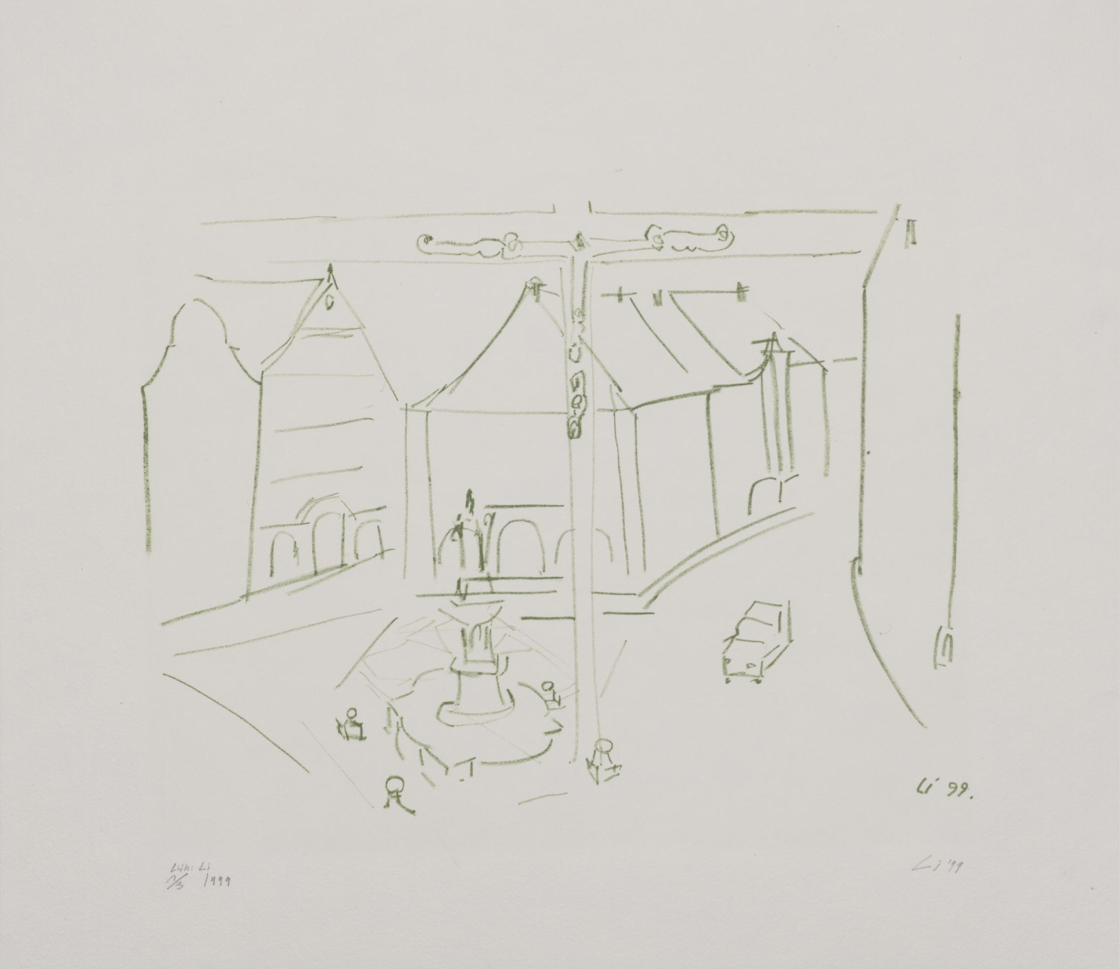 Lithographie in grün; ca. 21 x 28 cm. - Mit Bleistift datiert, numeriert (1/3) und signiert. - Gedruckt auf Büttenpapier. - MIT DIGITALAUFNAHME