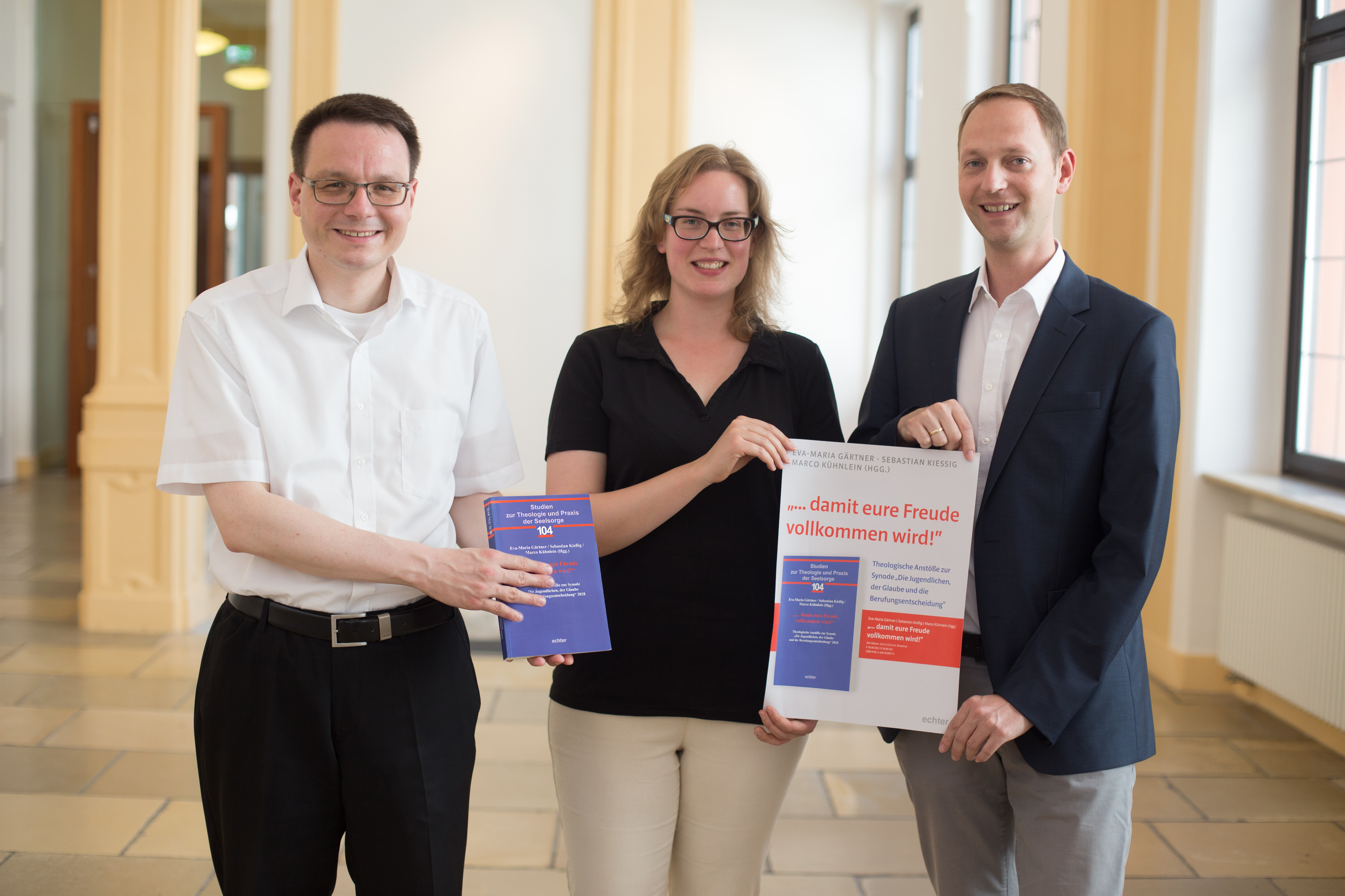 (v.l.) Sebastien Kießig, Eva-Maria Gärtner und Marco Kühnlein haben in ihrem gerade erschienenen Band Autorinnen und Autoren versammelt, die sich mit verschiedenen Perspektiven und Bedingungen des Christwerdens beschäftigen. (Foto: Klenk/upd)