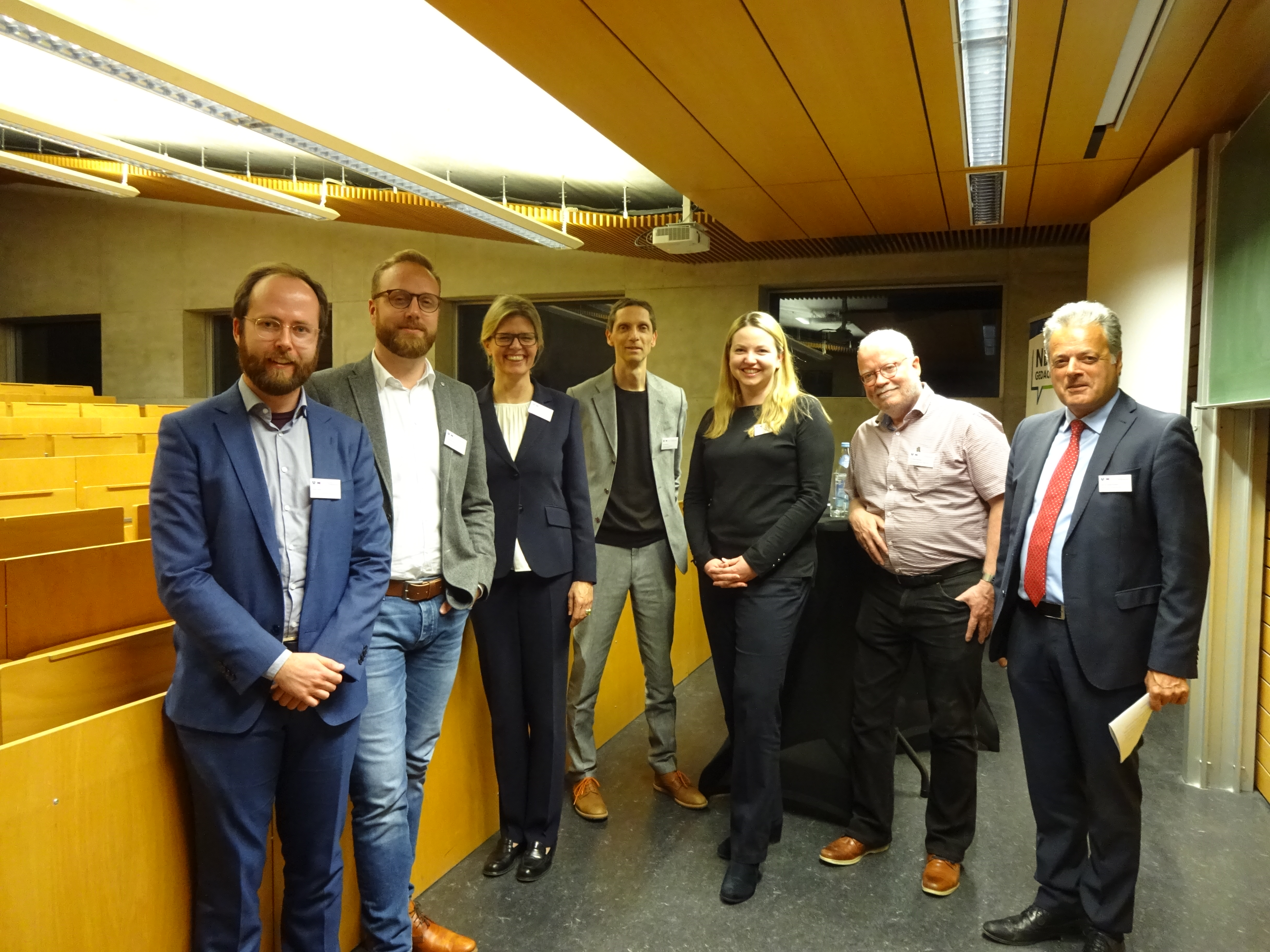 «(v.l.) Daniel Zacher (wissenschaftlicher Mitarbeiter des Zentrums für Entrepreneurship), Dr. Michael Tretter (MediaMarktSaturn Retail Group), Elke Christian (Leiterin der Geschäftsstelle der IHK am Standort Ingolstadt), Dieter Behrendt (ISP Eduard Pestel Institut für Systemforschung), Iris Eberl (Leiterin der IRMA-Geschäftsstelle), Dr. Steffen Maretzke (Bundesinstitut für Bau-, Stadt- und Raumforschung) und Prof. Dr. Harald Pechlaner (Leiter des Zentrums für Entrepreneurship) referierten über Pe...